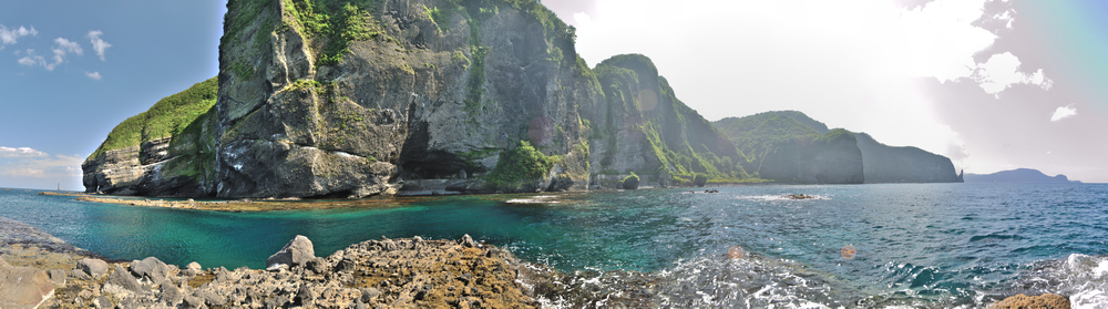 左:蛸穴ノ岬、右:チャラセナイ岬・セタカムイ岩・丸山岬、2013-08-19、Iyokanmorigen撮影。