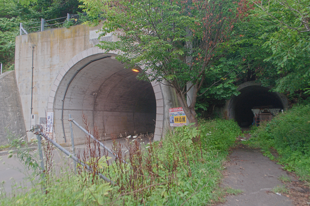 新旧の茶津トンネル((TID463569)・TID625605)東側坑口、2013-08-21、Iyokanmorigen撮影。
